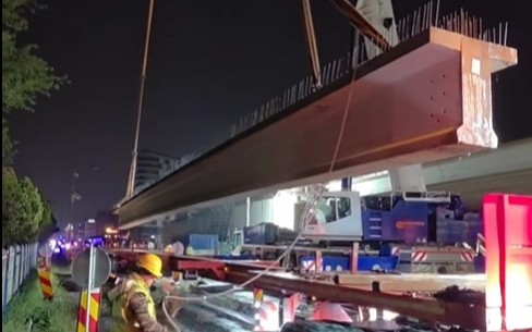 Montarea grinzii s-a realizat pe timpul nopții, din motive de siguranță și pentru a evita blocarea traficului pe cel mai circulat drum din țară.